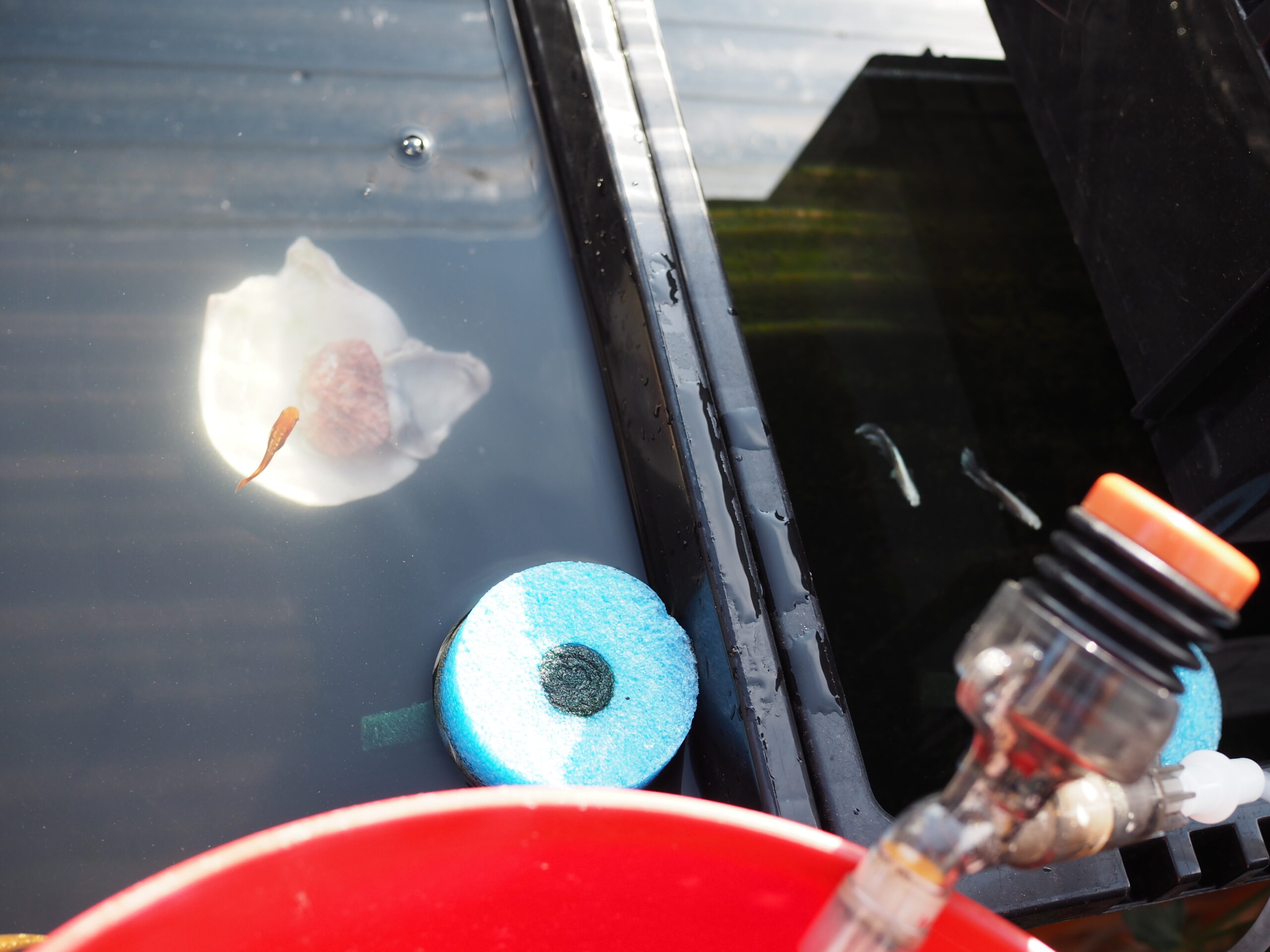なので、壁のコケは軽く落とすだけ、低床ひ敷いてる人は1/3残し程がいいと思います。